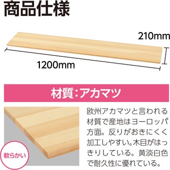 反りがおきにくく加工しやすい木材!工作・DIY・棚づくりにぴったり!ヨーロッパ産アカマツを使用したパイン集成材です。反りが起きにくく、カットや穴あけなどの加工がしやすいためDIY初心者から上級者まで扱いやすい素材です。木目がはっきりしており、棚やラックなど実用性とデザイン性を兼ね備えた作品づくりに適しています。黄淡白色のやさしい色合いで、塗装やオイル仕上げとの相性も良好です。耐久性にも優れており、インテリアから実用品まで幅広く活用できます。