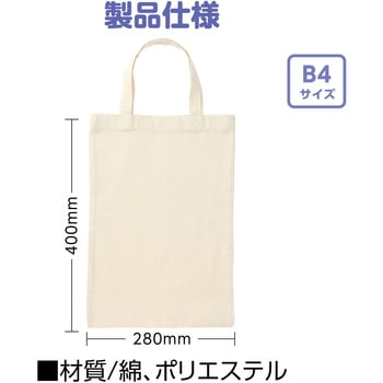 軽くて使いやすい、毎日にちょうどいいB4トート!B4サイズの書類が縦向きにすっぽり入るトートバッグです。縦型仕様のため、書類や作品を折らずにきれいな状態で持ち運ぶことができます。素材には綿・ポリエステルを使用しており、軽量で扱いやすいのも特長です。シンプルで持ちやすく実用的なサイズ感なので、学校や展示会、イベントでの配布用バッグとしてはもちろん、ワークショップや日常使いにも幅広く活躍します。