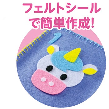材質:ポリエステル、綿。サイズ:フェルト:200×200mm、フェルトシール6色組:80×80mm、フェルトシールミニ2色組:50×50mm、綿:200×20mm、刺しゅう糸:1m。セット内容:フェルト(ラベンダー・ライトピンク)×各1、フェルトシール6色組(ピンク・黄緑・白・水・黄・オレンジ)×1、フェルトシールミニ2色組(赤・黒)×1、綿×4、刺しゅう糸5色組(白・黄・赤・緑・水色)×1