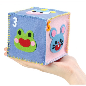 フェルトシールを使って、ミニサイズのサイコロが作れる手芸キットです。針と糸で縫うだけの簡単な工程で、数字やどうぶつモチーフを貼りながら楽しく仕上げられます。やわらかいフェルト素材を使用しているので、小さなお子さまにも安全です。完成後は数字遊びやごっこ遊び、学習用としても活用できます。製作時間の目安は約3~5時間。気軽にハンドメイドを楽しみながら、保育教材としても活用できる実用的なキットです。