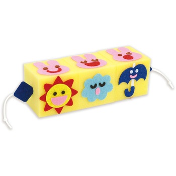 フェルトシールを使って、スポンジパズルがつくれる手芸キットです。3つのスポンジをひもでつなげて回転させ、絵柄を完成させるしかけ付きのパズルがつくれます。3つのスポンジにフェルトを貼るだけの簡単な工程で、楽しく仕上げられます。やわらかいスポンジとフェルト素材を使用しているので、小さなお子さまにも安全です。発想力や集中力、空間認識力を遊びながら育てられるパズルです。製作時間の目安は約2~4時間。