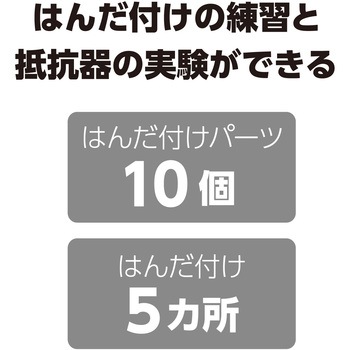 基板1枚で学べる!はんだ付けと抵抗の基本!抵抗器のはんだ付け練習と、抵抗値の基礎学習が同時にできる学習用基板セットです。はんだ付けパーツ数が少なく、短時間で作業できるため初めての実習にも適しています。部品配置がわかりやすく、作業工程を確認しながら進められます。時間の限られた授業や実習でも無理なく取り組めます。電子工作の導入や基礎確認におすすめの教材です。