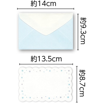 贈り物がもっと特別になる!星空のミニレター!ブルーの星がちりばめられた上品なデザインのミニレターセットです。作品に添えたりちょっとしたメッセージを送るのにぴったりです。繊細なカッティングと丁寧なエンボス加工に、ラメと箔を施した華やかな仕上がりで、プレゼント用のメッセージカードとしても活躍します。便箋5枚と封筒5枚のセット。25g以下なら82円で郵送でき、気軽に想いを届けられます。