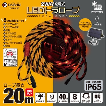 2WAY充電式 LEDトラロープ 20m 赤色LED