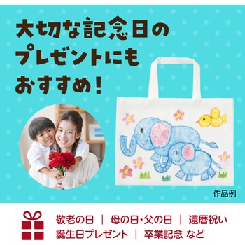 無地の不織布バッグに自由にお絵かきできる工作用バッグです。油性マーカー、水性マーカー、色鉛筆などさまざまな画材で着色でき、子どもから大人まで楽しめます。両サイドと開口部は折り返し縫製で仕上げており、丈夫で安心して使えます。持ち手が長く肩掛けでき、8切画用紙やA3サイズの用紙も折らずに収納可能です。短時間で完成するため、ワークショップや販促イベントに最適です。母の日や父の日、敬老の日などのプレゼント制作にもおすすめです。【使用可能画材】油性マーカー、水性マーカー、色鉛筆【目安製作時間】15分