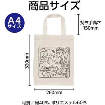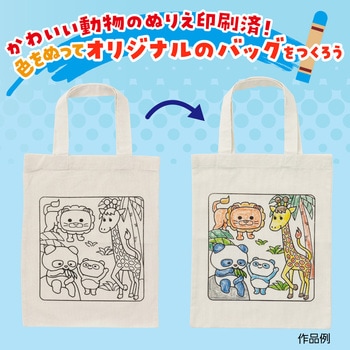 ぬりえ感覚でオリジナルバッグが作れるエコバッグです。バッグ表面にはかわいい動物の線画が印刷されており、油性ペンや水性ペン、色鉛筆などで自由に色付けできます。生成色のやさしい風合いで、軽量で持ち運びやすく、完成後は普段使いのバッグとしても活躍します。A4サイズ対応でマチがなく、厚みの少ない書類やクリアファイルなどが自重で曲がることを防いで持ち運ぶことができます。短時間で完成するため、ワークショップや販促イベントに最適です。母の日や父の日、敬老の日などのプレゼント制作にもおすすめです。【使用可能画材】油性ペン、水性ペン、色鉛筆【目安製作時間】15分