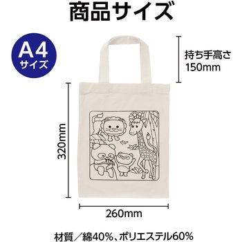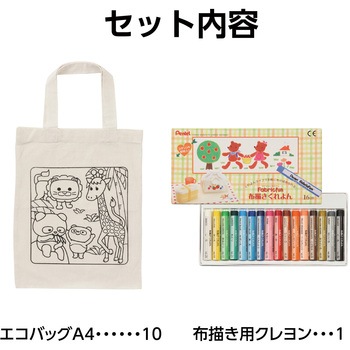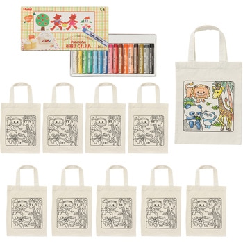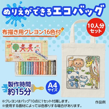 ぬりえ感覚でオリジナルバッグが作れるエコバッグ10人分セットです。バッグ表面にはかわいい動物の線画が印刷されており、油性ペンや水性ペン、色鉛筆などで自由に色付けできます。布描きクレヨン16色付きで準備の手間が少なく、すぐに製作を始められます。生成色のやさしい風合いで、軽量で持ち運びやすく、完成後は普段使いのバッグとしても活躍します。A4サイズ対応でマチがなく、厚みの少ない書類やクリアファイルなどが自重で曲がることを防いで持ち運ぶことができます。短時間で完成するため、ワークショップや販促イベントに最適です。母の日や父の日、敬老の日などのプレゼント制作にもおすすめです。【使用可能画材】油性ペン、水性ペン、色鉛筆【目安製作時間】15分