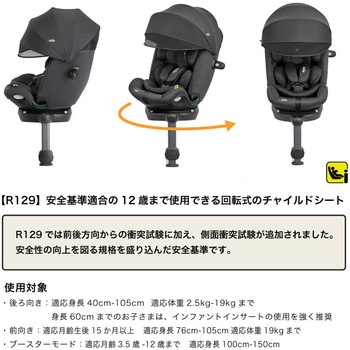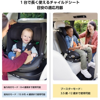 【後ろ向きモード時】身長40-105cm 2.5-19kgまで(0歳から4歳頃)