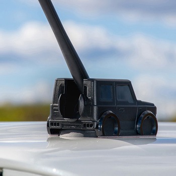 ジムニーをモチーフとしたミニカー風デザイン。アンテナ周りのドレスアップに最適。JMアンテナマスコットは、アンテナに被せるだけのかんたん取り付け。背面はスリットを入れることによりアンテナも可動可能。取り付け方法は両面テープで貼るだけなので、DIY初心者でも安心して取り付けできます。