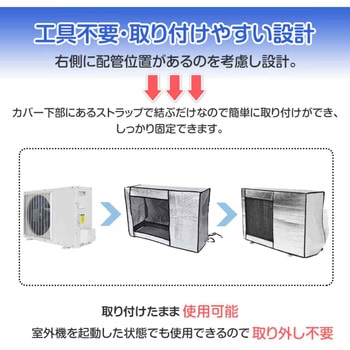 工具不要で簡単に取り付けできる室外機カバーです。耐久性に優れたメッシュ素材を使用し、日除け効果で室外機の温度上昇を抑えて省エネに貢献。オールシーズン使用でき、雨や汚れからもしっかりガードします。手軽に設置できる快適・省エネアイテムです。
