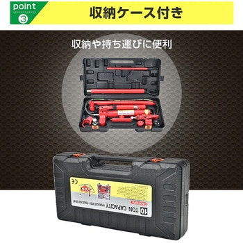 自動車のボディフレーム修正やジャッキ作業に最適なロングラムジャッキです。手軽に使える設計で、先端アタッチメントが豊富なため用途に合わせた作業が可能です。ワニくちスプレッダー付きで効率的にボディ補正が行え、収納ケース付きで持ち運びや保管も便利。整備や板金作業の現場で活躍する実用性抜群のアイテムです。