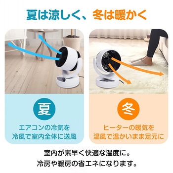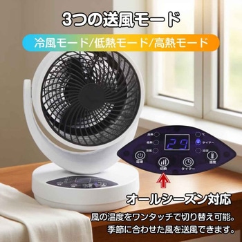一年中使える温冷サーキュレーターです。冷風・温風モードを搭載し、冷暖房の効率アップや洗濯物の乾燥にも活躍します。3つの送風モードと1℃単位の温度調節で季節に合わせた快適な風を実現。左右自動首振り・上下角度調節で広範囲に送風でき、過熱保護機能や切タイマー設定で安心・便利にご使用いただけます。