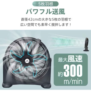 空気の循環や換気、ワックスがけ後の乾燥など、さまざまなシーンで活躍するサーキュレーターです。5枚の大きな羽根が広い空間の空気を素早く撹拌し、人が集まる場所の密対策やウイルス対策にも効果的。上下方向の風向きは180度まで無段階で調整でき、必要な場所へしっかり送風できます。さらに取っ手付きで持ち運びも簡単。作業現場から施設まで幅広く使える便利な一台です。
