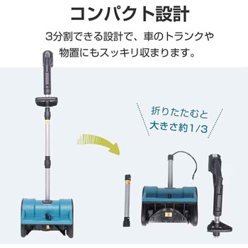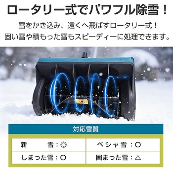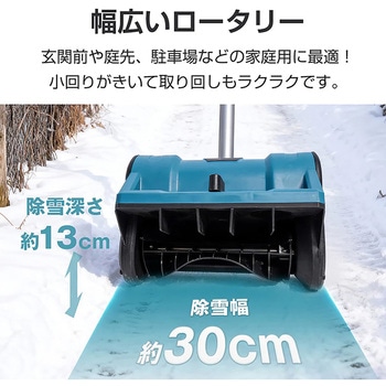 力をかけずに操作できるロータリー式の電動除雪機です。最大投雪距離は約8mで、広いスペースの除雪もスピーディーに対応。幅30cmのロータリーにより小回りが利き、狭い場所でも扱いやすい設計です。ブラシレスモーターを搭載し、摩擦が少なく高効率かつ長寿命を実現。コードレス仕様のため、バッテリーを装着するだけですぐに使用できます。