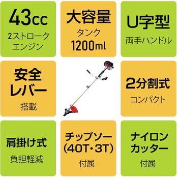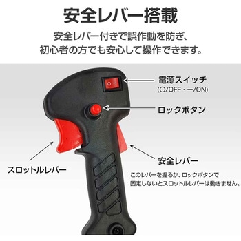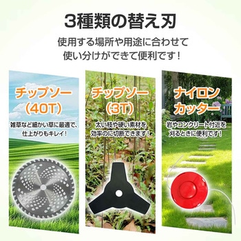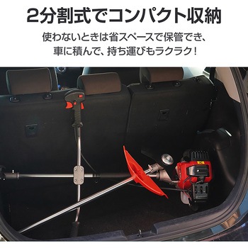 両手ハンドルで安定して作業ができる草刈り機です。本体は2分割できるため、使用後はコンパクトに収納可能。チップソーとナイロンカッターの両方が付属し、用途に応じて使い分けできます。小石や草の飛び散りを防ぐカバー付きで安全性も高く、誤作動を防止する安全レバーも備えた安心設計です。