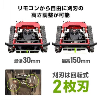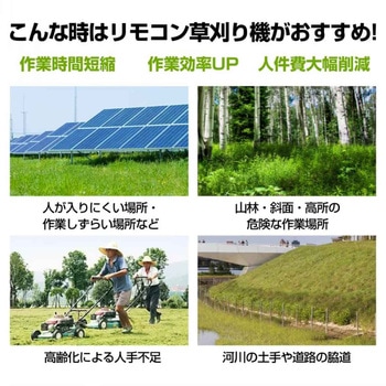作業者が入りにくい場所でも安全かつ効率的に草刈りができる、遠隔操作対応のラジコン草刈機です。送信機による操作が可能で、最大45°の急傾斜地にも対応。パワフルな9馬力エンジンを搭載し、安定した作業を実現します。直進走行を自動でアシストし、その場で旋回できるため方向転換もスムーズ。負荷が大きくなると自動で減速し、安全性にも配慮しています。刈り高さは30mm~150mmまで調整可能です。