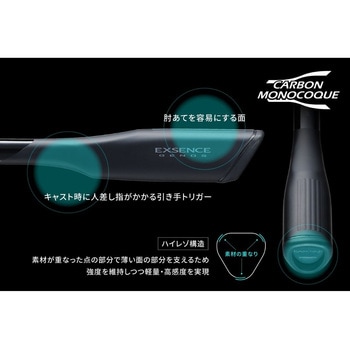[カーボンモノコックグリップ]は、その軽量・中空・薄肉な一体成型構造によって手に響き渡るような高感度を実現。