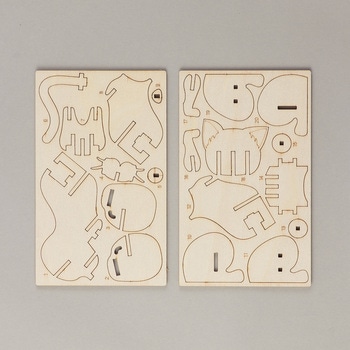 レーザーカット済みのパーツを順番に差し込むだけで組み立てられる、簡単で楽しい木製3Dパズルです。立体なので、ネコのかわいいシルエットを再現できます。工具不要で手軽につくれるので、初心者でも扱いやすい商品です。木の温かみがあり、作ったあとはインテリアとしても飾れるため、工作にも鑑賞にもぴったり。組立時間約20分で気軽に楽しめるので、ワークショップやイベントの集客アイテムとしても活躍します。種類も豊富なので、集めて並べても楽しい3Dパズルシリーズです。