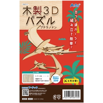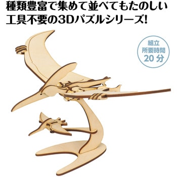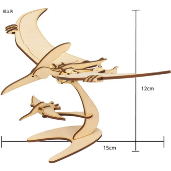 レーザーカット済みのパーツを順番に差し込むだけで組み立てられる、簡単で楽しい木製3Dパズルです。立体なので、プテラノドンの迫力のあるシルエットを再現できます。工具不要で手軽につくれるので、初心者でも扱いやすい商品です。木の温かみがあり、作ったあとはインテリアとしても飾れるため、工作にも鑑賞にもぴったり。組立時間約20分で気軽に楽しめるので、ワークショップやイベントの集客アイテムとしても活躍します。種類も豊富なので、集めて並べても楽しい3Dパズルシリーズです。