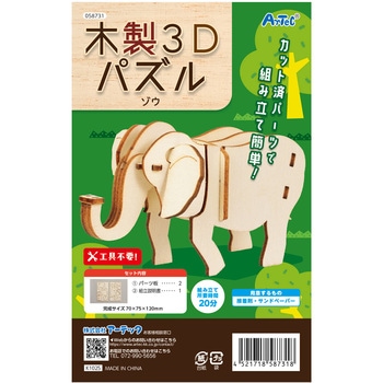レーザーカット済みのパーツを順番に差し込むだけで組み立てられる、簡単で楽しい木製3Dパズルです。立体なので、ゾウの迫力のあるシルエットを再現できます。工具不要で手軽につくれるので、初心者でも扱いやすい商品です。木の温かみがあり、作ったあとはインテリアとしても飾れるため、工作にも鑑賞にもぴったり。組立時間約20分で気軽に楽しめるので、ワークショップやイベントの集客アイテムとしても活躍します。種類も豊富なので、集めて並べても楽しい3Dパズルシリーズです。