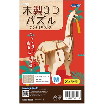 レーザーカット済みのパーツを順番に差し込むだけで組み立てられる、簡単で楽しい木製3Dパズルです。立体なので、ブラキオサウルスの迫力のあるシルエットを再現できます。工具不要で手軽につくれるので、初心者でも扱いやすい商品です。木の温かみがあり、作ったあとはインテリアとしても飾れるため、工作にも鑑賞にもぴったり。組立時間約20分で気軽に楽しめるので、ワークショップやイベントの集客アイテムとしても活躍します。種類も豊富なので、集めて並べても楽しい3Dパズルシリーズです。