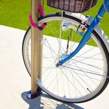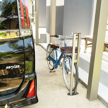 サイクルスタンドS02型は、スタイリッシュな流線的のデザインが映えるアルミ製の1台用自転車スタンドです。2本のポールが車輪の傾きを抑制するから省スペースに駐輪できます。サイクルスタンドにワイヤーロックを巻き付けることで持ち運びによる盗難を防止できます。コンクリートねじで固定するため、簡単に取り付け取り外しができます。愛車の車輪径に合わせて高さを変えられる調整機能付きです。