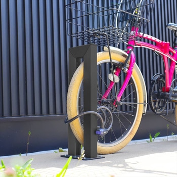 サイクルスタンドミニは、シンプルな格子デザインで幅広く使えるアルミ製の1台用自転車スタンドです。2本のポールが車輪の傾きを抑制するから省スペースに駐輪できます。サイクルスタンドにワイヤーロックを巻き付けることで持ち運びによる盗難を防止できます。コンクリートねじで固定するため、簡単に取り付け取り外しができます。子乗せ自転車やジュニア自転車に対応するミニタイプです。