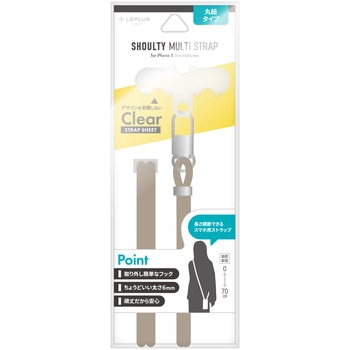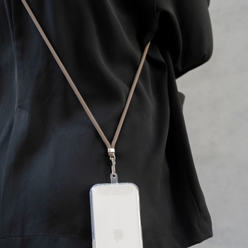 端末やケースを選ばず装着できるスマホショルダーストラップ/ステッカーなどの装飾を邪魔しない、クリアな挟み込みシート付属/長さ調整可能/しなやかなΦ6mmコード