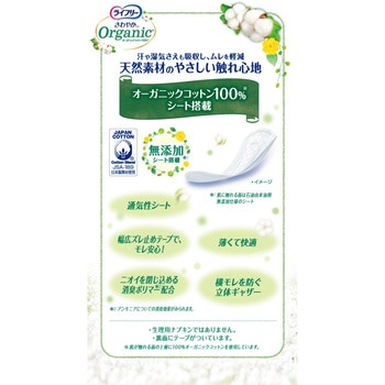 オーガニックコットン100%※1シート搭載。~天然素材の触れ心地~汗や湿気さえも吸収し、ムレを軽減!ニオイを閉じ込める消臭ポリマー※2配合。※1肌が触れる面の上層に100%オーガニックコットンを使用しています。※2アンモニアについての消臭効果が見られます。