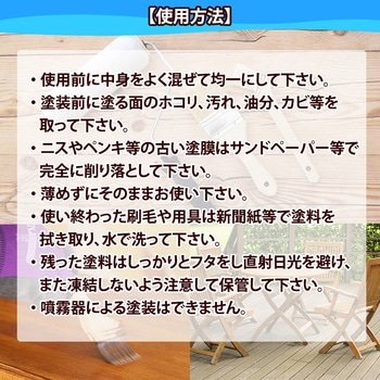 用途木材保護塗料仕様水性→乾燥が早い・臭いが少ない・安全性が高い・作業性が良い・環境に優しい (低 VOC)、油性→乾燥が遅い・臭いが強い・安全性が低い・作業性が悪い・環境に優しくない[※この様に違いがあります。水性を使わない理由はありません!他にはないシロアリ対策!木材内部から守ります!JIS規格に基づいた正式な防蟻試験をクリアした従来品をベースにした改良品!浸透性抜群! 内部まで薬剤が行き渡り長時間効果が持続!防腐・防虫・防カビにも効果があります!100年以上の歴史を持つ木材防腐・防虫剤メーカー吉田製油所の安心安全の木材防腐・防虫剤です!]使用方法使用前に中身をよく混ぜて均一にして下さい。塗装前に塗る面のホコリ、汚れ、油分、カビ等を取って下さい。ニスやペンキ等の古い塗膜はサンドペーパー等で完全に削り落として下さい。薄めずにそのままお使い下さい。使い終わった刷毛や用具は新聞紙等で塗料を拭き取り、水で洗って下さい。残った塗料はしっかりとフタをし直射日光を避け、また凍結しないよう注意して保管して下さい。噴霧器による塗装はできません。種類水性 木材防腐・防虫保護ペイント容量(L)0.7危険等級Ⅲ危険物の類別第四類危険物の品名第二石油類危険物の数量0.7L油性 or 水性水性危険物の性状非水溶性内容量1個(0.7L)