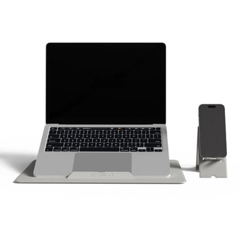 持ち運びを前提とした、折りたたみ型のノートパソコンスタンドです。 組み立ての際、マグネットが内蔵されているため、セットアップも切り替えもスムーズに行えます。 スマホスタンドもセットになっているため、おそろいカラーで統一感もあります。 ノートPC・タブレット・スマホに対応し、デスクでもソファでも理想の角度で作業できるので効率が向上します。 折りたたみ設計で持ち運びも収納も快適です。 ガラス繊維×マンガン鋼を採用し、軽量&高耐久でしっかりと支える安心感を提供します。