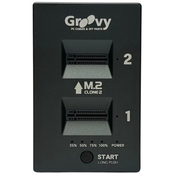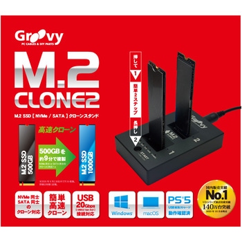 パソコンを使用しないでNVMe(PCIe)接続のM.2 SSD同士、若しくはSATA接続のM.2 SSD同士のクローンを作成できるスタンドです。