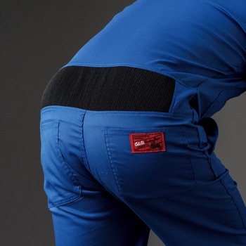 腰部の「4WAYプリーツ」により、屈む・しゃがむ等の作業時の身体の引きつり感を大幅に軽減