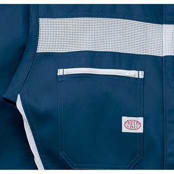 脇下部と胸部には通気性の良いメッシュ素材を使用しています。