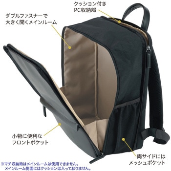 ・PC収納部と分離したメインルームは大きく開き大容量。両サイドにメッシュポケット付きで使い勝手抜群です。