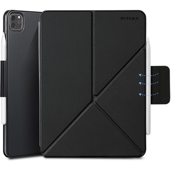 11インチ iPad Pro用ケースです。 横置きと縦置き両方を叶えるスタンド機能は使いやすくて便利です。 三角形の抜群安定感により倒れなく使えます。 折り紙のようにおることで角度は4つ選択でき、ネットサーフィンに動画鑑賞、勉強等の作業向けとスムーズに素早く切り替えられます。 こだわりの詰まったレザーは、きめが細かく美しい色合いが魅力です。 裏面はポリウレタンレザーで傷つきにくいし汚れも強いです。 優れたグリップ力を発揮します。 色合いと作りの良さが醸し出す落ち着いた風合いは様々な場面に馴染めます。 マグネット式でケースの張り付けが非常に行いやすいです。 iPadその物の薄さ感を感じます。 ケース自体が非常に軽量でマグネットが強力なので、ずり落ちたり剥がれたりせずiPadがしっかり固定されます。 重さ300g以下、ケースは薄くて軽くて作られております。 市販の多くのフォリオよりも軽量です。 iPadに余計な重さを増加しません。 iPadをより簡単に、より快適に持ち運ぶことができます。 隠されたマグネット式ペンシルストラップは、充電中のペンシルをしっかりと保持し、外出先での落下を防ぎます。 ストラップを使用しない時は折りたたんで背面パネルに隠すことができ、iPadフォリオのミニマルでスマートなルックスを保ちます。