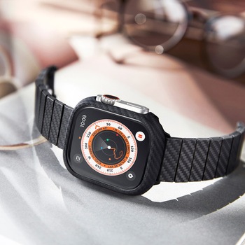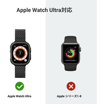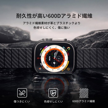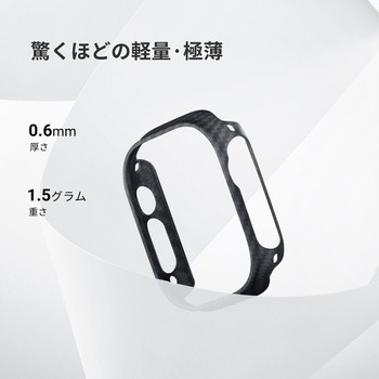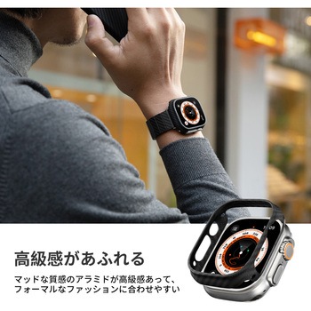 Apple Watch Ultra 2/Ultra対応のケースです。 薄さ0.6mm、重さ0.8gのApple Watchケースは、かさばることなく優れた保護性能と快適な使い心地を提供します。 Apple Watchにぴったりとフィットするように設計されており、Apple Watchの流麗な美しさを保ちながら、ボタンに簡単にアクセスできます。 航空宇宙グレードのアラミド繊維から作られたケースは、あなたのApple Watchを傷や衝撃から守る強固さを保証します。 人間工学に基づいて設計されており、ケースを装着したままワイヤレス充電が可能です。