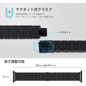 Apple Watch Series 8~1、SE、Ultraの38/40/41mm、42/44/45mm、49mmなどの異なるサイズに対応できます。 カーボンファイバーとは、スーパーカーなどもよく利用される頑丈でスタイリッシュな素材です。 PITAKA Watch Bandのすべてのコマは「リサイクルカーボンファイバー」というエコロジー素材から製造されます。 軽くてスムーズにテクスチャードされたカーボン繊維製PITAKA Watch Bandは日常の使用に良い触り心地を提供します。 すっきりとした美しさのあるカーボン繊維製PITAKA Watch Bandは、どのタイプのアップルウォッチに対してもかせないアクセサリになります。 特許取得の磁気ファスナーとセキュリティロックで、Apple Watchをしっかりと固定します。 ワンクリックでスムーズに取り外せます。