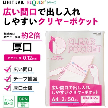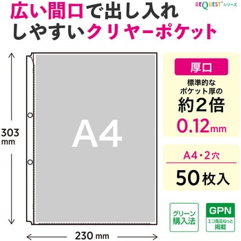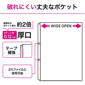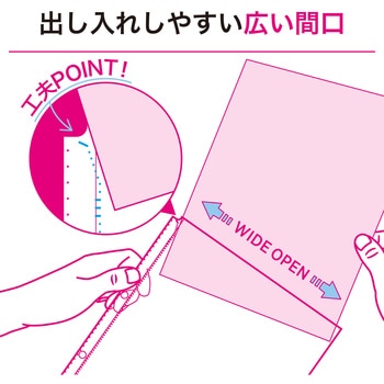 広い間口で出し入れしやすいクリヤーポケット50枚パック A4・2穴