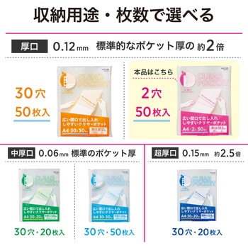 広い間口で出し入れしやすいクリヤーポケット50枚パック A4・30穴