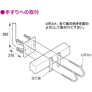 必要な場所に合わせて取り付けられるBS・CS用アンテナ取り付け金具です。付属品は当て板×2枚、Uボルト×2本、六角ナット×4個、スプリングワッシャー×4枚、平ワッシャー×4枚になります。取り付けは手すりへの取り付け、椅子への取り付け、壁面取り付けなどのいろいろな場所に取り付けがあります。