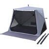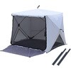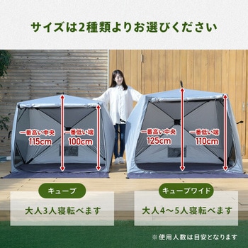 今までのポップアップテントとは違って設営、撤収がさらに簡単になったパッとサッとテント。フルクローズで着替えもできる。メッシュ仕様で虫を寄せ付けずに通気性はそのまま。棒状にコンパクト収納されるので持ち運びがラクラク。両サイドにもメッシュ機能で風通しが良い。両面ファスナーで内側からも開閉可能。独立フロントシート。便利なポケット付きでスマホやタオルの収納に。