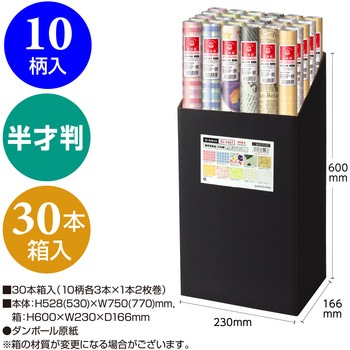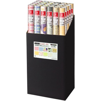 さまざまなシーンで使いやすいように花柄やファンシー柄を10種類セットアップしたバラエティタイプ。省スペースで、たくさんの包装紙が陳列できるロールタイプのセットです。使い切りの1本2枚巻きロールタイプ。