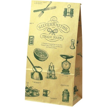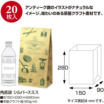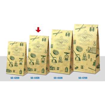 アンティーク調のイラストが印刷されたナチュラルなイメージの角底袋(紙袋)です。