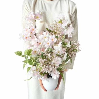 【商品特徴】満開の桜をイメージした大ぶりのボリューム桜アレンジ。やさしいピンクの花びらがたっぷり入り、花見や入学・卒業など春シーズンの売り場演出に最適です。インバウンド需要が高まる中、海外からお越しのお客様に日本の風情を感じるおもてなしを。