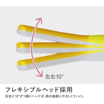 左右に10°ずつ動くフレキシブルヘッドが肌の曲面にやさしくフィット。