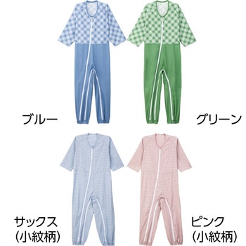 38728 介護用フルオープンつなぎパジャマサックス小紋柄M