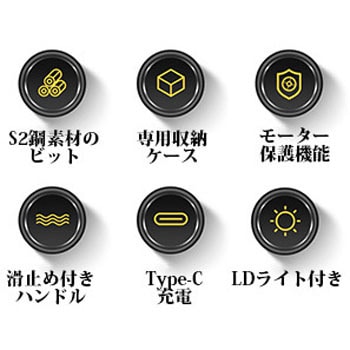 スタイリッシュなデザインと高い機能性を併せ持ちDIYから家庭内のちょっとした修理まで幅広く対応する万能ツール。専用ケースに30種のビットと付属品を収納。大容量バッテリーを搭載し、1回の充電で約40分連続使用が可能。LEDライトを搭載し、影ができることなく快適な作業が可能。またドライバーヘッドはマグネット加工を施し、作業の快適性と紛失防止に役立ちます。