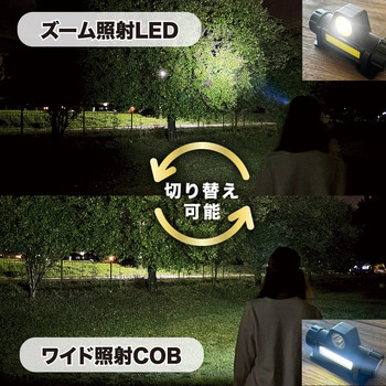 ワイド照射のCOBとズーム照射のLEDを用途に応じて切り替えることができます。