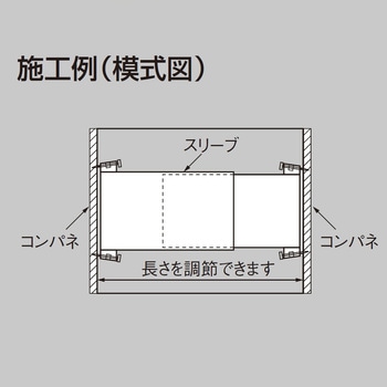 梁幅に応じて任意の長さ(スライド式)に対応可能です。コンクリート埋設御のスリーブ取り外しが不要です。スリーブ端面の釘金具を使用し、釘で片側3ヵ所(計6ヵ所)を型枠に固定してください。